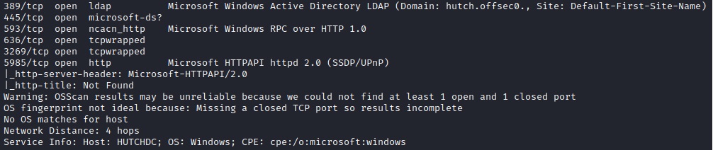 389/ldap : We found the target's domain: hutch.offsec