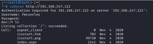 Cadaver acts as a client for WebDAV operations, enabling you to interact with WebDAV-enabled servers from the command line. It's actually a legitimate admin tool used for interacting with WebDAV so no real exploit here, just using valid credentials.