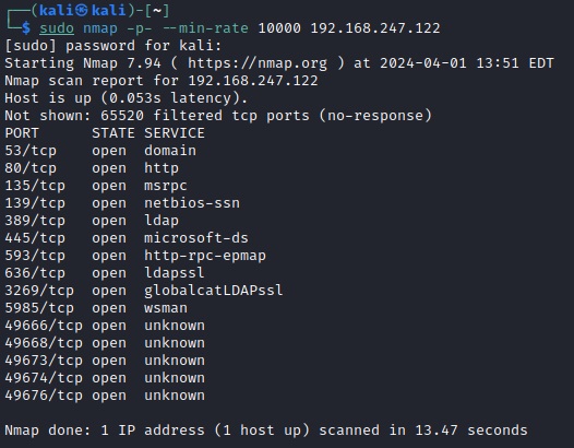 sudo nmap -p- --min-rate 10000 192.168.XXX.122